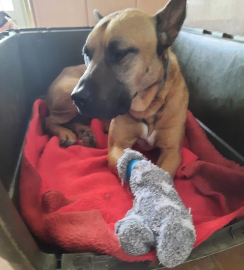 Erst jetzt (kurz vor Weihnachten 2021) übereignete Roys Besitzer ihn dem Tierschutz und Roy durfte bei Ute als Pflegehund einziehen. Seine Pfoten werden dreimal täglich mit Salbe behandelt und verbunden und heilen gut. Roy hat sich von all diesen Strapazen gut erholt.